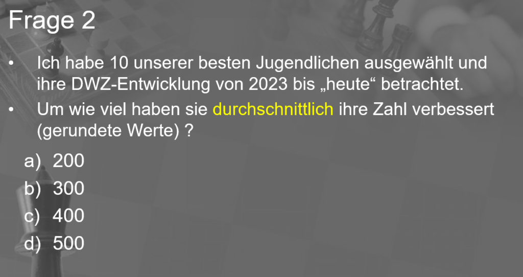 Erfreulicherweise aber auch vier Jugendspieler aus dem Freitagstraining und sogar drei Jugendspieler mit DWZ unter 1100.