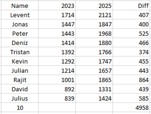 Bemerkenswert wieder Deniz, der wie im Januar auch die Spieler der ersten Mannschaft ins Schwitzen brachte. Er belegte den sechsten Platz vor Philipp und Marius. Gut auch Michael mit 7 aus 10 auf Platz 4.