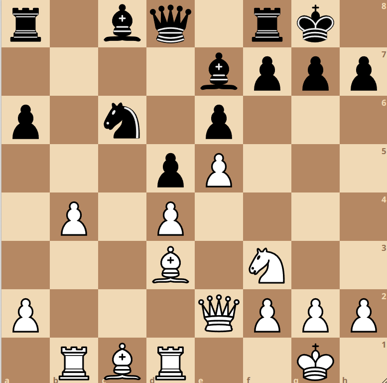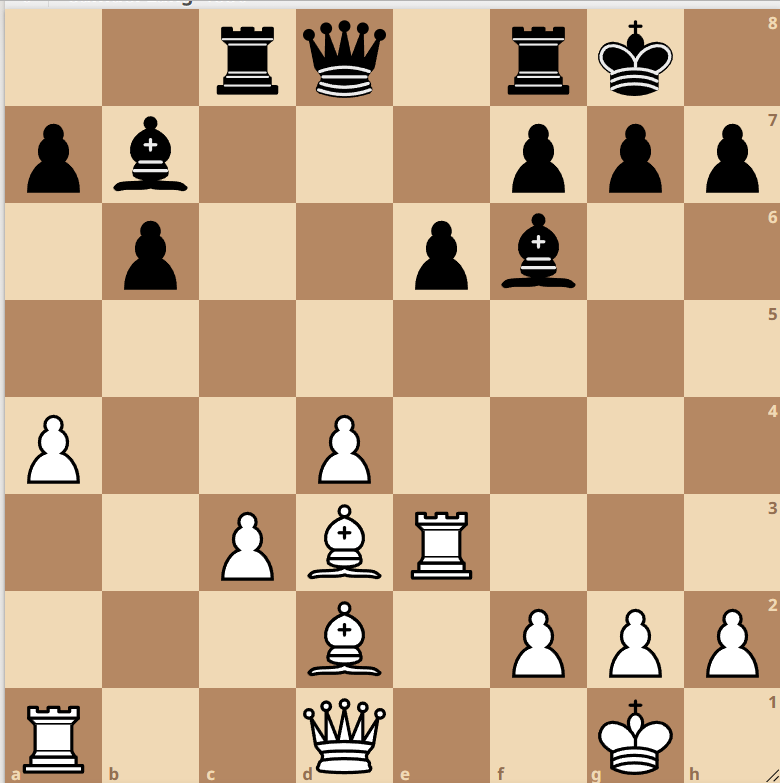 Der C-Freibauer der folgenden Stellung stand mal auf c6, doch anstatt ihn dort mit Vorteil zu blockieren, fuchtelte Schulz zuerst im Zentrum und auf der b-Linie herum und stoppte den Bauern erst auf c2.